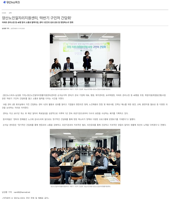양산노인일자리지원센터, '하반기 구인처 간담회'(양산뉴스파크)