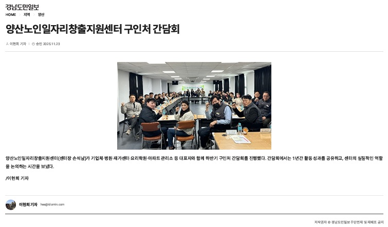 양산노인일자리창출지원센터 구인처 간담회(경남도민일보)