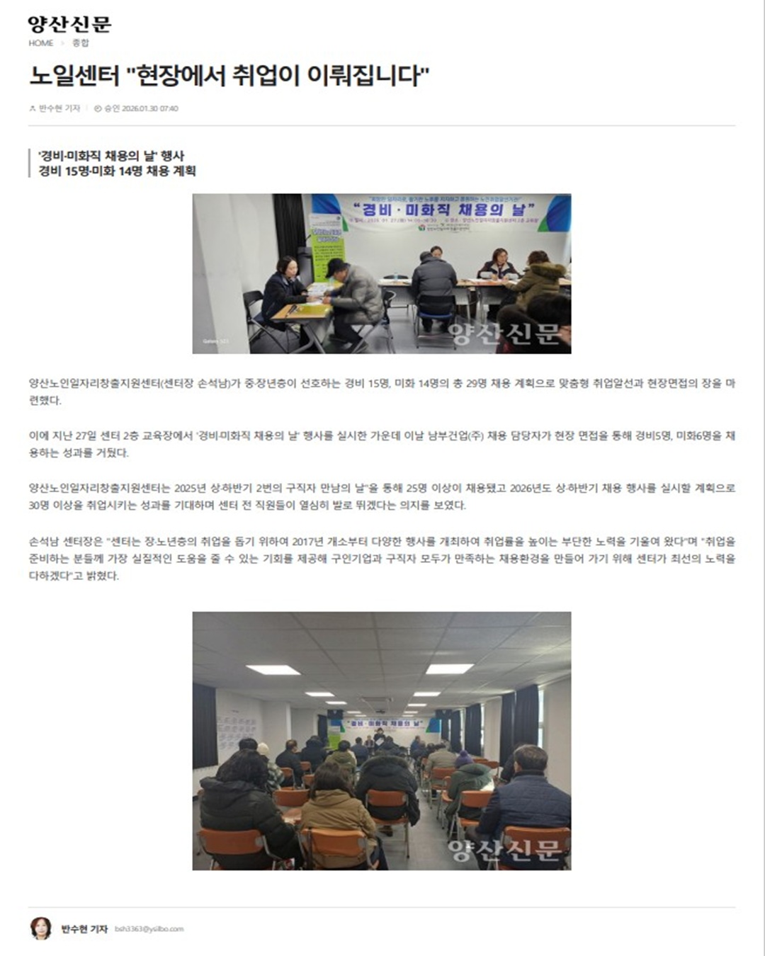 양산노인일자리센터 "현장에서 취업이 이뤄집니다"(양산신문)
